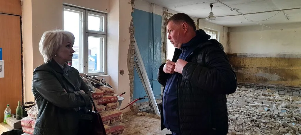 Именно в такой «черновой» обстановке прошла рабочая встреча заместителей главы администрации Дубровского района С.Е. Артемова и Г.В.Кубекиной с подрядчиком. Обсудили план и график возведения новых перегородок, обустройство пожарного выхода, закупку некоторых строительных материалов.